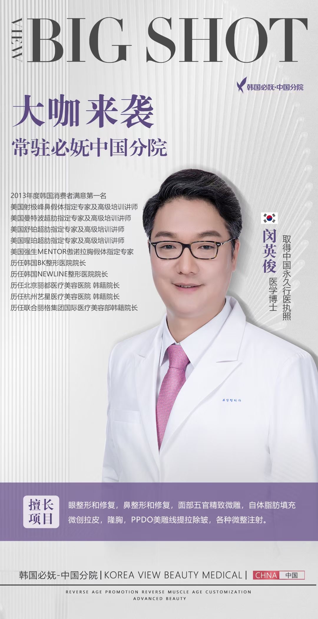 5月份闵英俊院长将常驻韩国必妩中国分院,将为众多的求美者提供个性化的美丽改善方案。